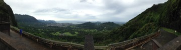 Nu’uanu Pali is a scenic overlook on the east side of the Ko’olau mountains. The overlook is part of the old Pali Highway, that went from Honolulu to Kane’ohe. The overlook is at 1,170 ft and the view is spectacular spanning from Kualoa (North) to the Kailua (South).